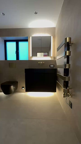 This project involved a full renovation of an en-suite bathroom in Essex, transforming the space into a striking black and gold wet room with modern technology and high-end finishes.